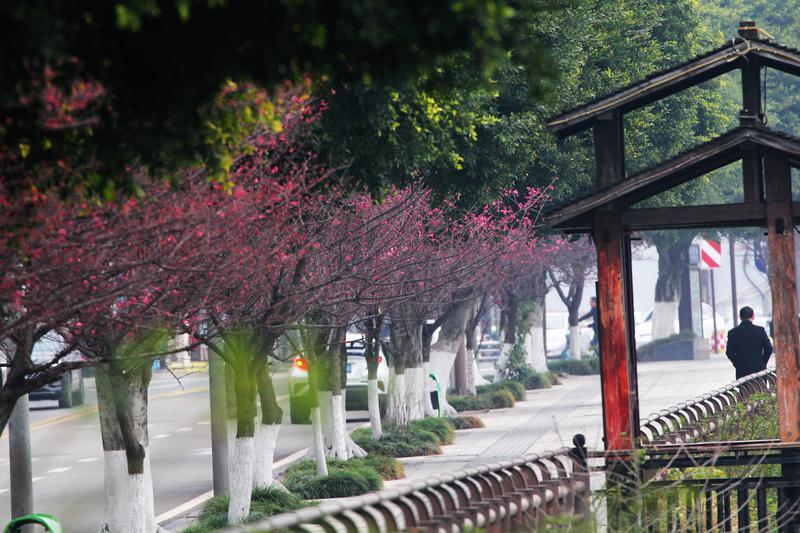 内江东桐路“美人梅”开放迎新春