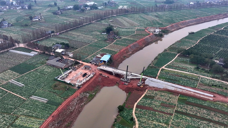 内江旱地坝村:青龙河川渝跨河大桥正式合龙
