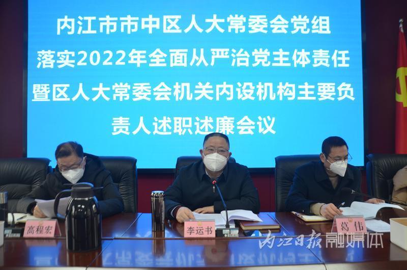 2022年12月30日,内江市市中区人大常委会党组落实2022年全面从严治党主体责任暨区人大常委会机关内设机构主要负责人述职述廉会议召开。区人大常委会党组书记、主任李运书主持会议并讲话。