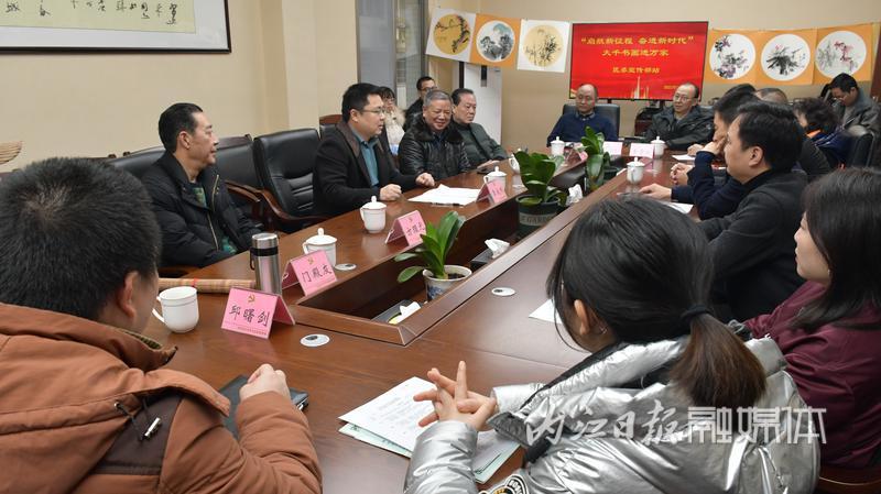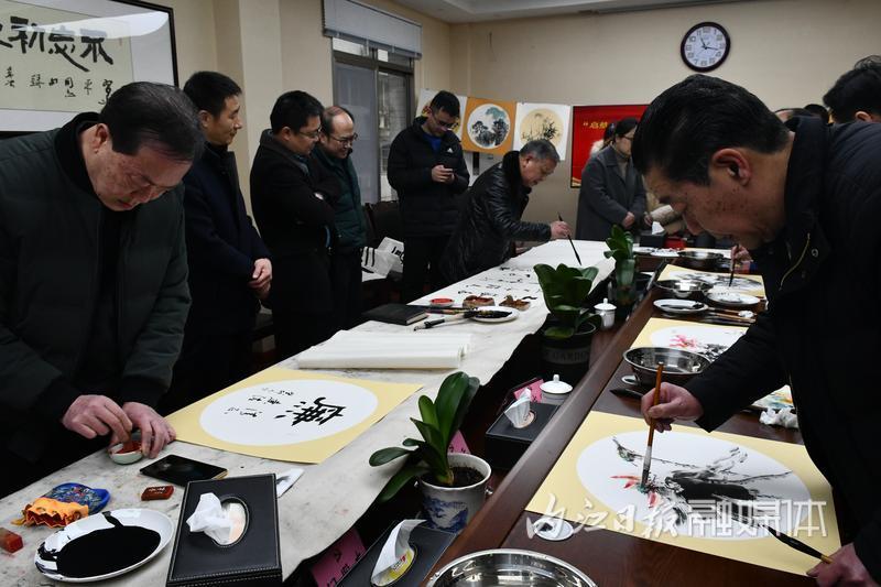据了解,市中区“起航新征程 奋进新时代”大千书画进万家活动从1月15日开始,陆续开展进村镇、进机关、进社区、进企业、进校园等共十站活动。此次大千书画进万家活动走进区委宣传部是该活动的第四站,共创作书画作品40余幅,为机关干部职工们送上了一份文化大餐,让大家领略到书画文化的艺术魅力。