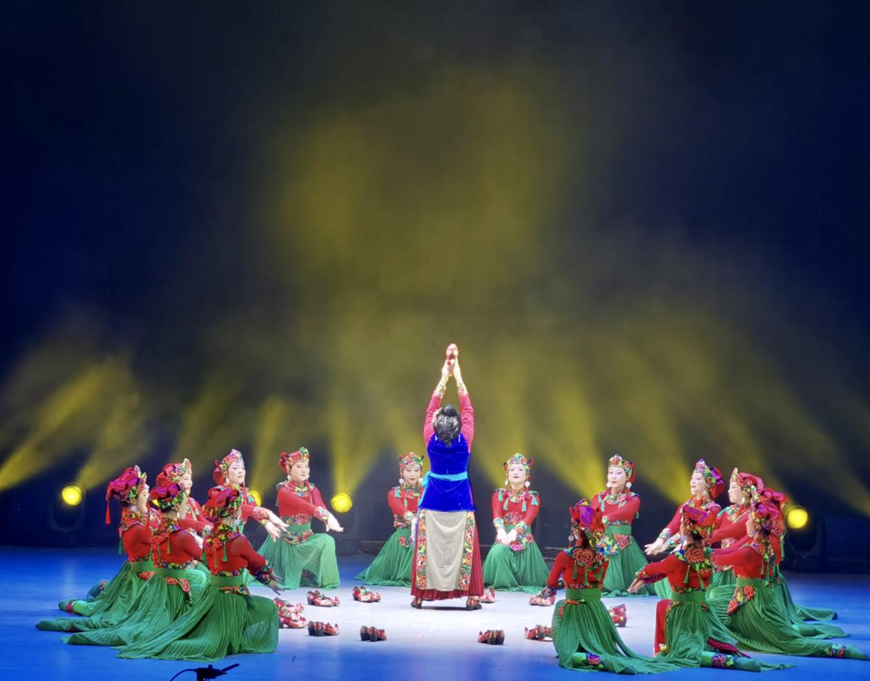一针一缠绵,一线一相思。内江市代表队参赛节目羌族群舞《纳吉阿莫》是根据羌族婚俗:妈妈为出嫁的女儿缝制作为嫁妆的鞋——云云鞋而打造,生动地演绎了母亲为女儿制鞋过程中量鞋、缝制的过程,用舞蹈语言描绘出母亲的大爱以及对女儿出嫁的不舍。“云云鞋~温暖的鞋;云云鞋~吉祥的鞋”,是阿莫为纳吉缝制的幸福和爱。