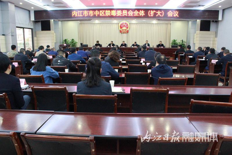 4月24日,内江市市中区禁毒委员会召开全体(扩大)会议。图为会议现场
