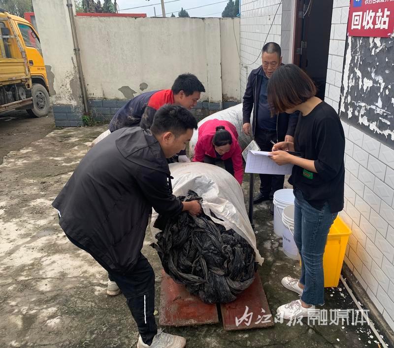 5月10日,记者在市中区永安镇塘坊拗村废旧农膜回收网点看到,前来上交废旧农膜的种植户张连正在搬运废旧薄膜,一旁的工作人员则在登记验收。