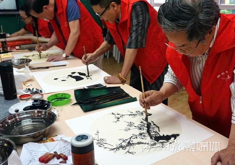 创作现场,书画家们挥毫泼墨,一幅幅笔墨精妙的书法作品和栩栩如生的绘画作品呈现在了大家眼前。以笔墨传情,用丹青写意,“沐浴书香 快乐成长”“静待花开”“乐教育 共成长”“阅读悦美”……力透纸背的字迹是书法家们对孩子的殷切期盼和美好祝愿,熊猫、牵牛花、小金鱼、小彩雀等充满着童真童趣的画作温暖人心。