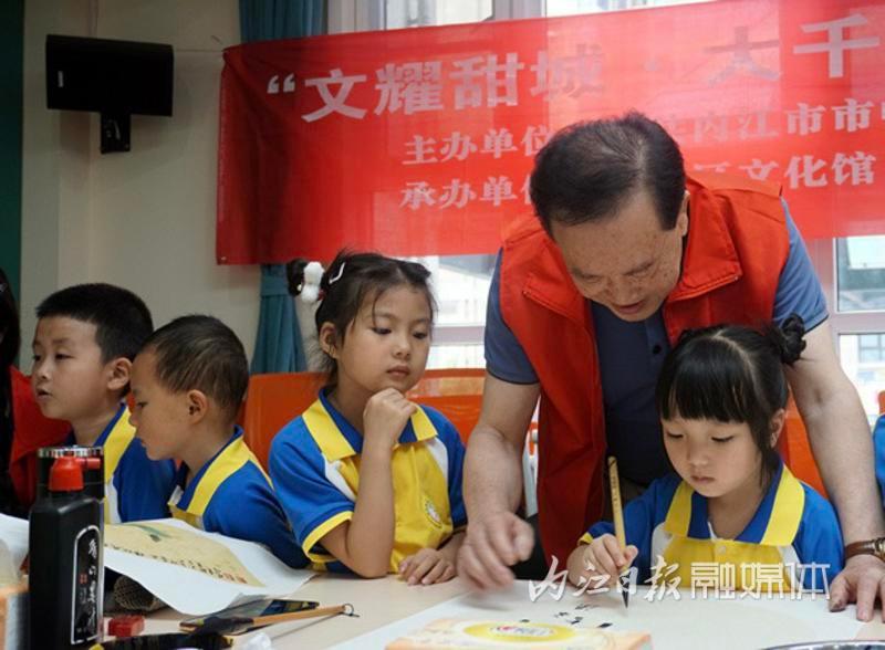 5月26日,由中共内江市市中区委宣传部、市中区文化广播电视和旅游局主办,市中区文化馆承办的“文耀甜城·大千书画进万家”书画进校园活动走进内江市实验幼儿园(碧桂园)。市中区书法家协会的8名书画家们,为幼儿园的师生们带来了一场文化盛宴。