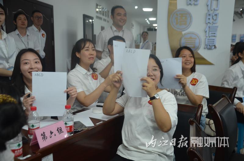 比赛现场,55名选手分成2个对抗队,11个小组、每个小组5名队员,各选手通过必答和抢答取得成绩,以抢答数量和正确率综合评分,并按照成绩的60%纳入个人总成绩,确定个人最终名次。