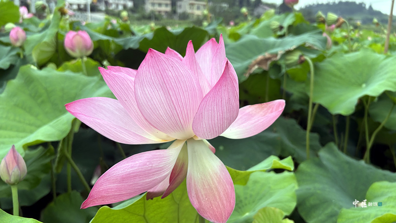 据了解,永安镇鹿子村的荷花花期从6月持续到10月。荷花莲子既可以生食,也能做成菜肴和美酒,深受人们青睐。而成熟后的莲藕、莲子及荷塘养鱼,让昔日荒田,焕发新机。