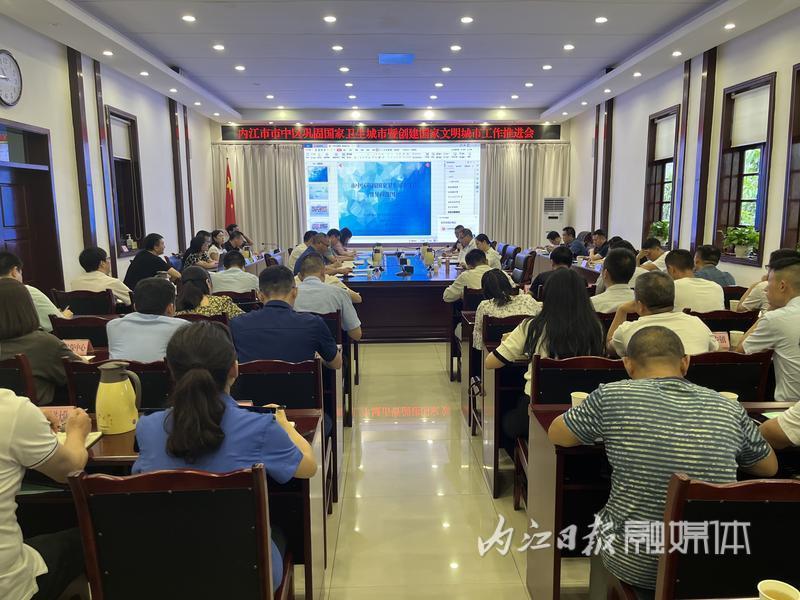 7月19日,市中区巩固国家卫生城市暨创建全国文明城市工作推进会召开。图为会议现场