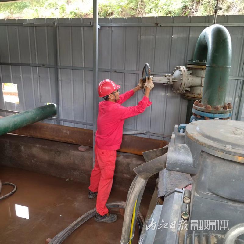 8月1日上午8时许,记者来到位于市中区白马镇董家村的川南油气田威217井张家山提灌站机房,作为管道建设工程的施工方相关负责人程理文正在查看提灌站抽水设备运行情况,“目前试运行期,提灌站每天可为黄河镇水库补水3000立方米”。