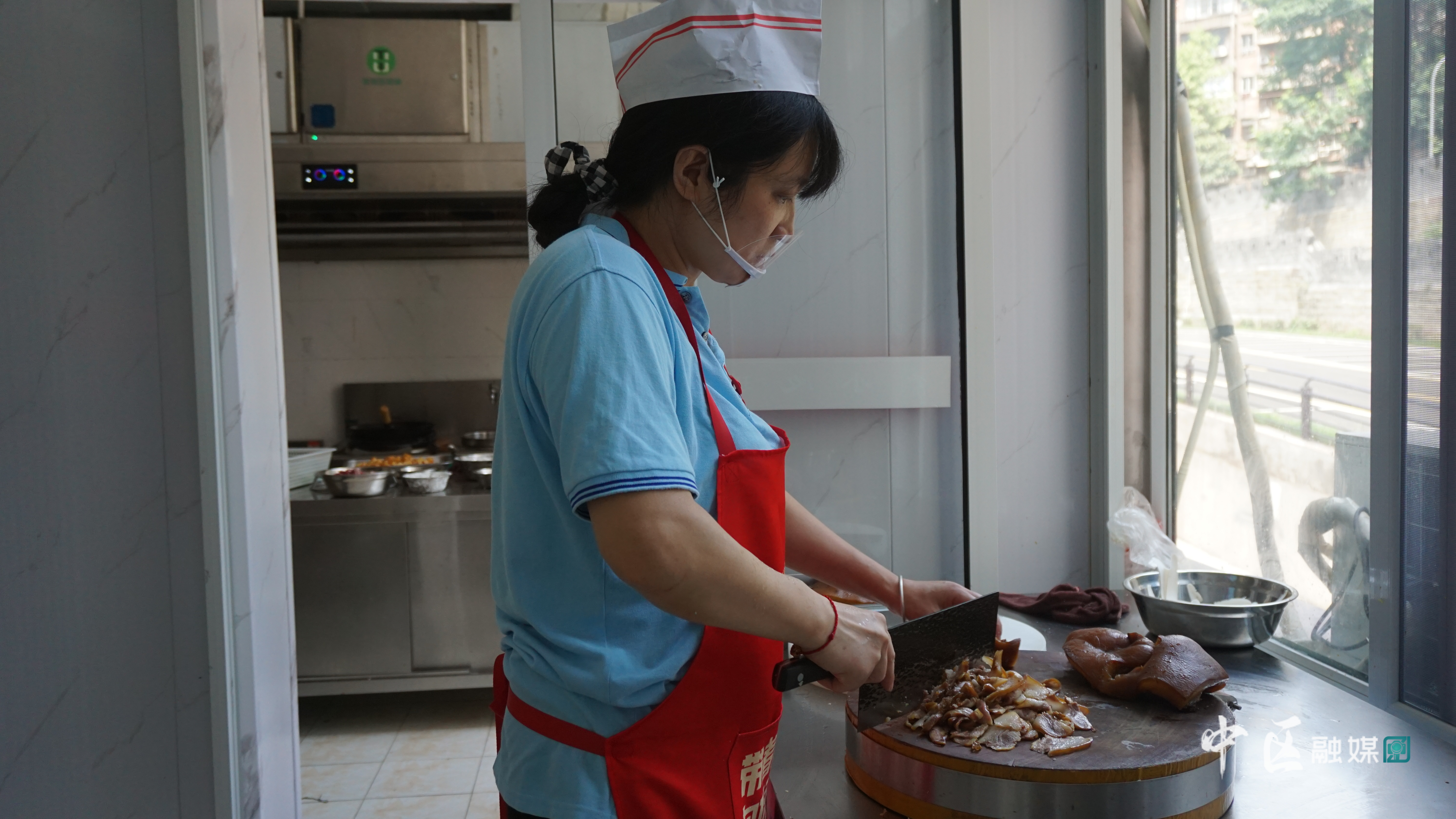 洗菜、切肉、淘米……8月9日,在市中区城东街道综合为老服务中心的“长者餐厅”后厨里,厨师和小工早早地就开始为当天的午饭做着准备工作。而另一边的就餐区内,工作人员也开始拖地、擦桌、消毒碗筷。大家各司其职,等着老人们前来就餐。