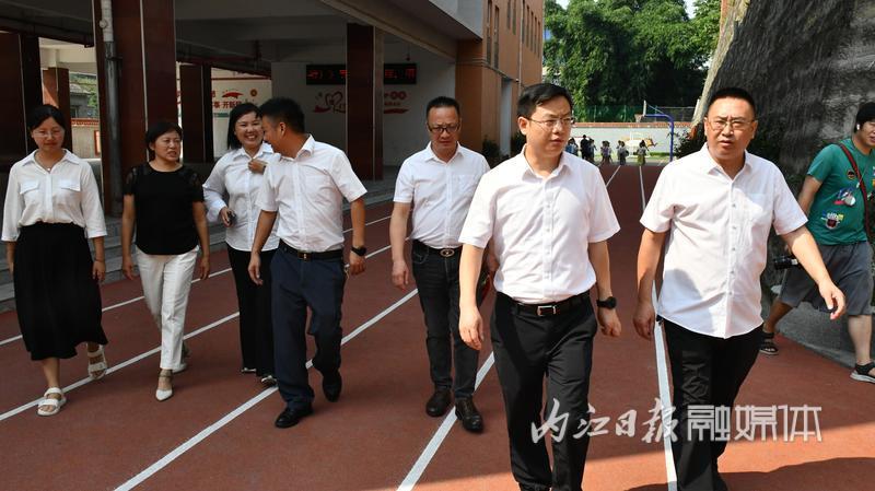 岳光科先后来到白马镇中心幼儿园、白马镇中心小学校、内江市第九中学校。每到一处,他都走进校园,实地察看校园环境,详细了解学校教学质量及学生学习、思政教育、心理辅导等情况,亲切询问教职工的工作和生活情况,并对教师们潜心教育、悉心育人的精神表示肯定,勉励他们以更强有力的使命担当扎根教育事业,坚持立德树人,潜心钻研教学,为市中区教育高质量发展贡献力量。