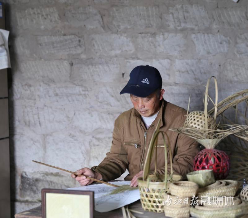 在竹林里,几经挑选的新鲜青竹在柳勇的手上,经过刮青、剖丝、打光等多道工序后,变成一根根厚薄均匀、粗细一致的竹篾。根根竹篾在柳勇手里起舞翻腾,缠绕于指尖,来回穿插,错落有序。无数巧思在他心中,也体现在他的竹编作品中。不管是日常家用的竹编果篮、筲箕,还是竹编蝴蝶、人物竹编画、瓷胎竹编茶具等工艺品,均制作精美、造型别致。