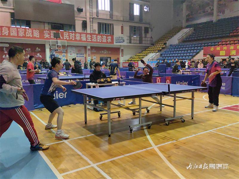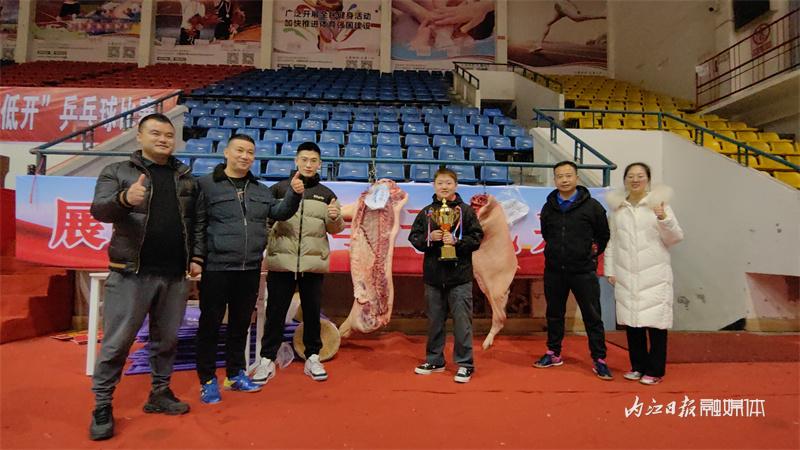 2024年1月1日,内江市梅家山体育馆,2024年四川省“百城千乡万村·社区”系列赛事活动内江市中区站乒乓球比赛——男女混合团体赛举行。名次前四名的代表队获得年货猪肉奖品。