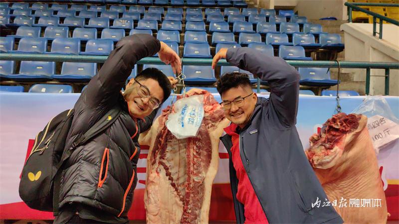 颁奖仪式上,内江市乒乓球协会相关负责人为获奖运动员颁发了奖杯、奖牌、证书。名次前四名的代表队还获得年货猪肉奖品,为颁奖现场增添了喜庆元素。获奖选手表示,会把奖品带回家灌香肠或者腌制腊肉。