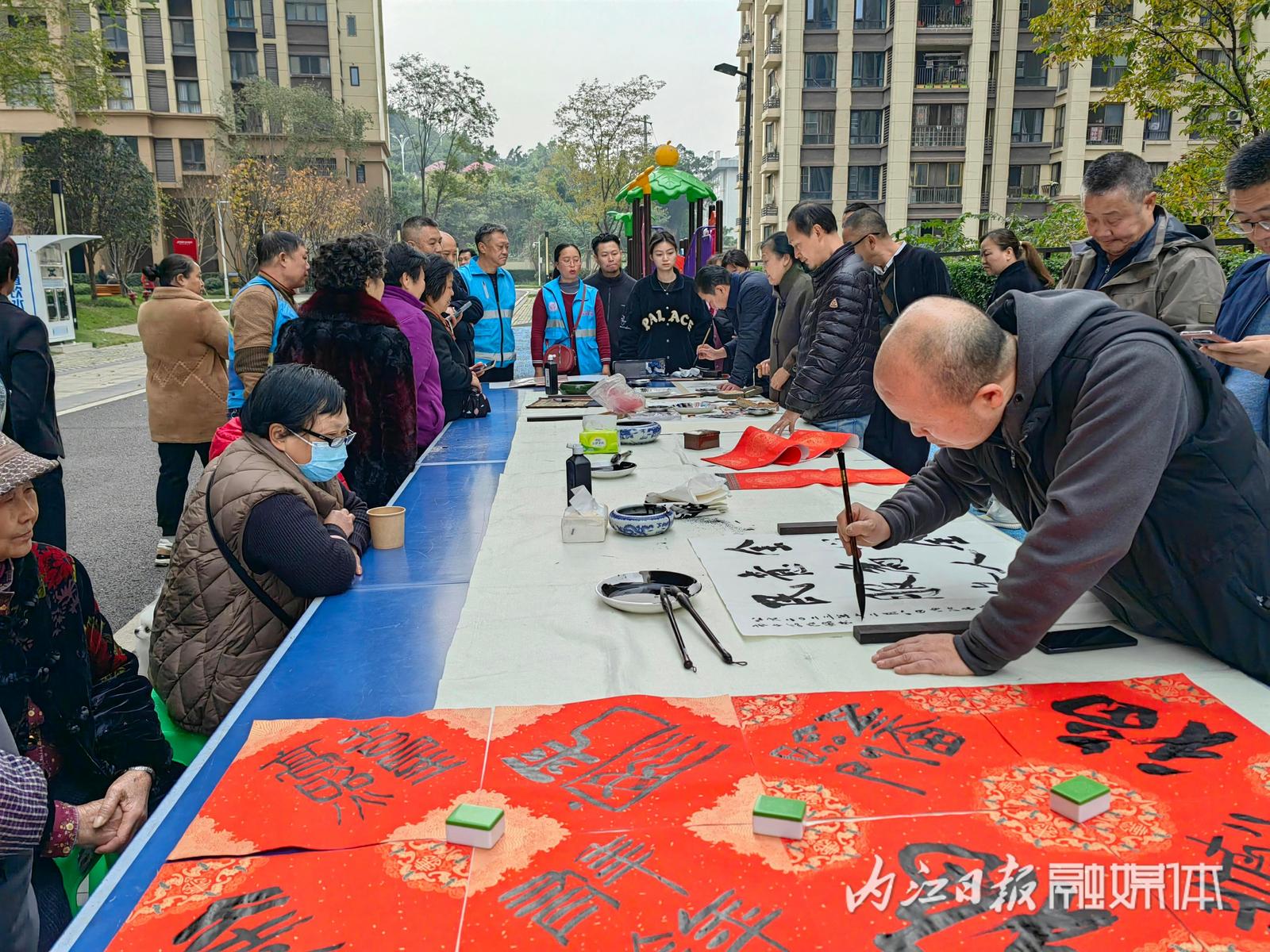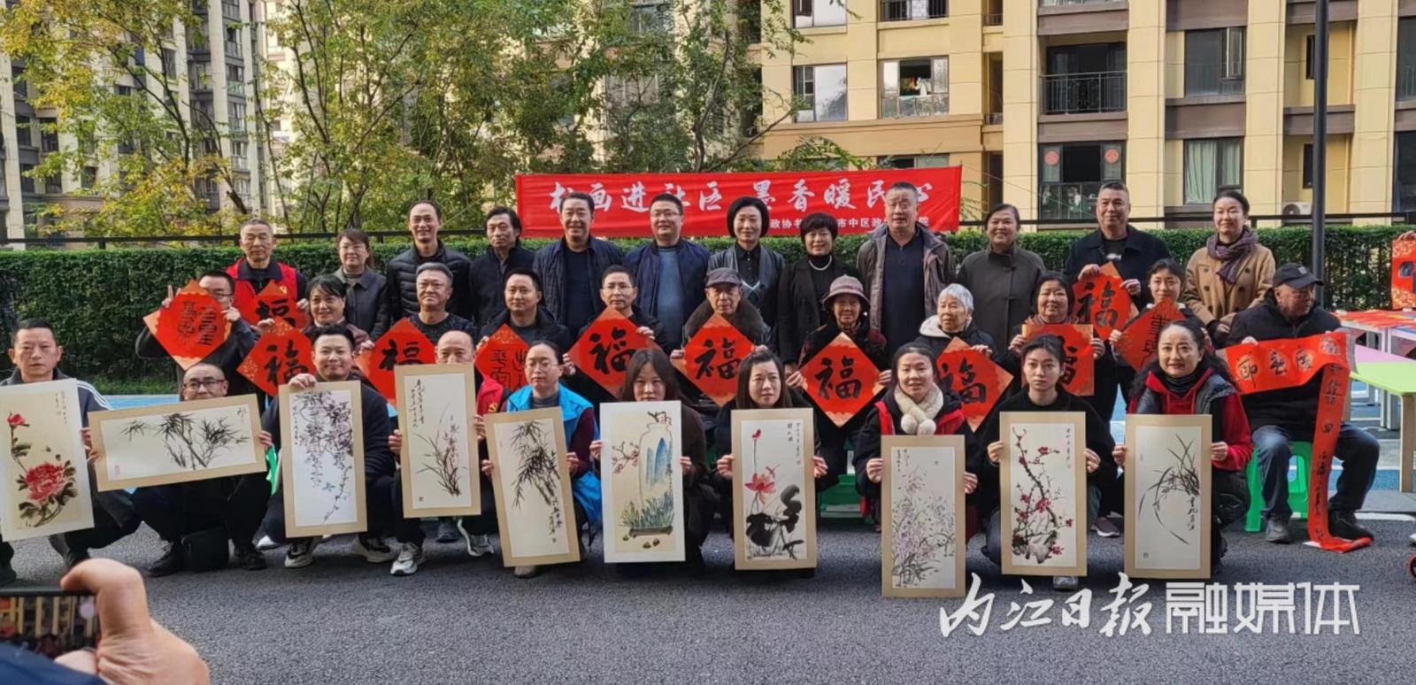 为进一步传承中华优秀传统文化,丰富居民精神文化生活, 12月8日,内江市市中区玉溪街道脚盆田社区联合内江市政协书画院、市中区政协书画院开展“书画进社区,墨香暖民心”活动。