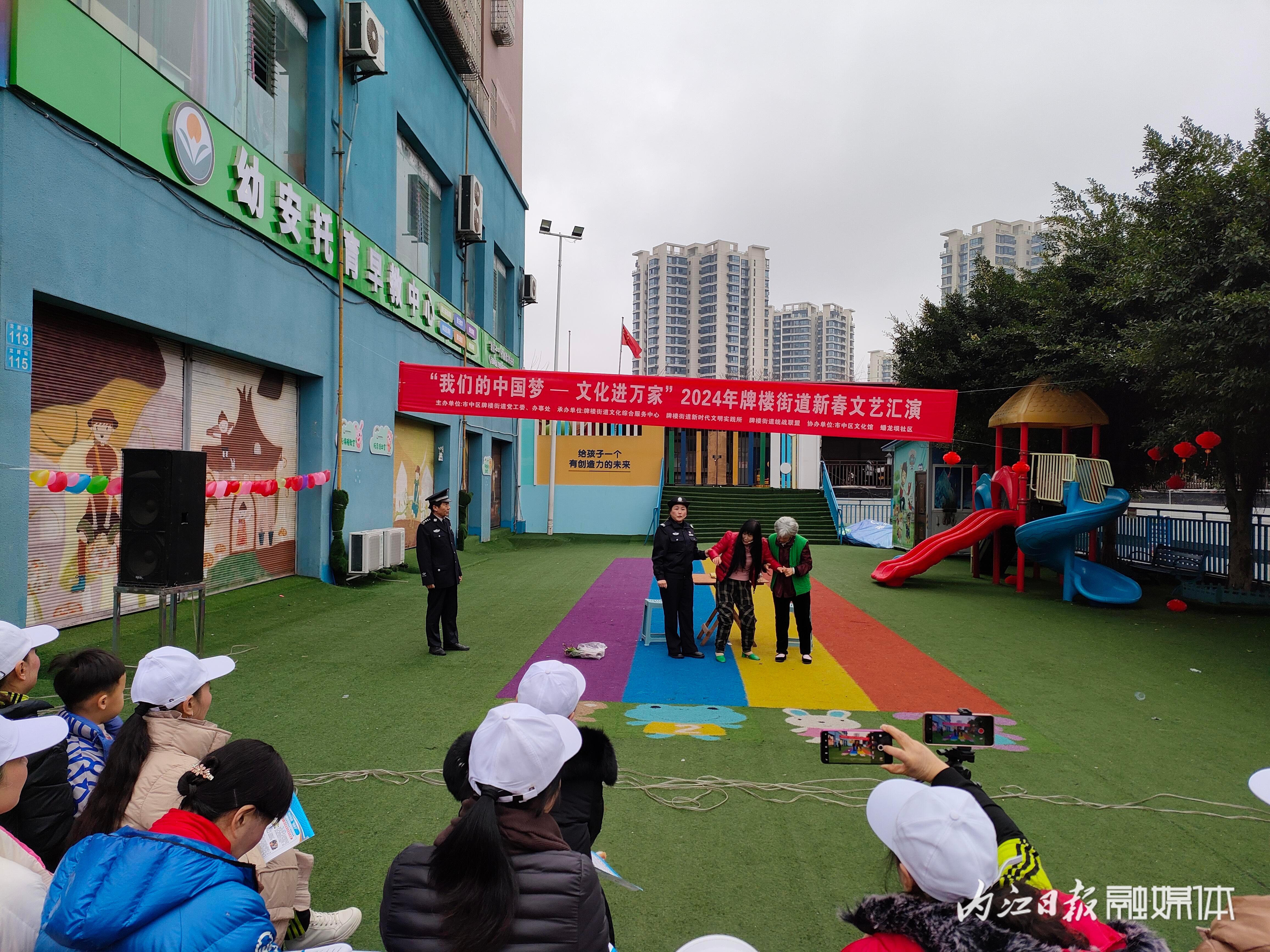 2月5日,“我们的中国梦——文化进万家”2024年牌楼街道新春文艺汇演在内江市市中区上上东方小区举行,精彩的节目吸引了众多居民围观。