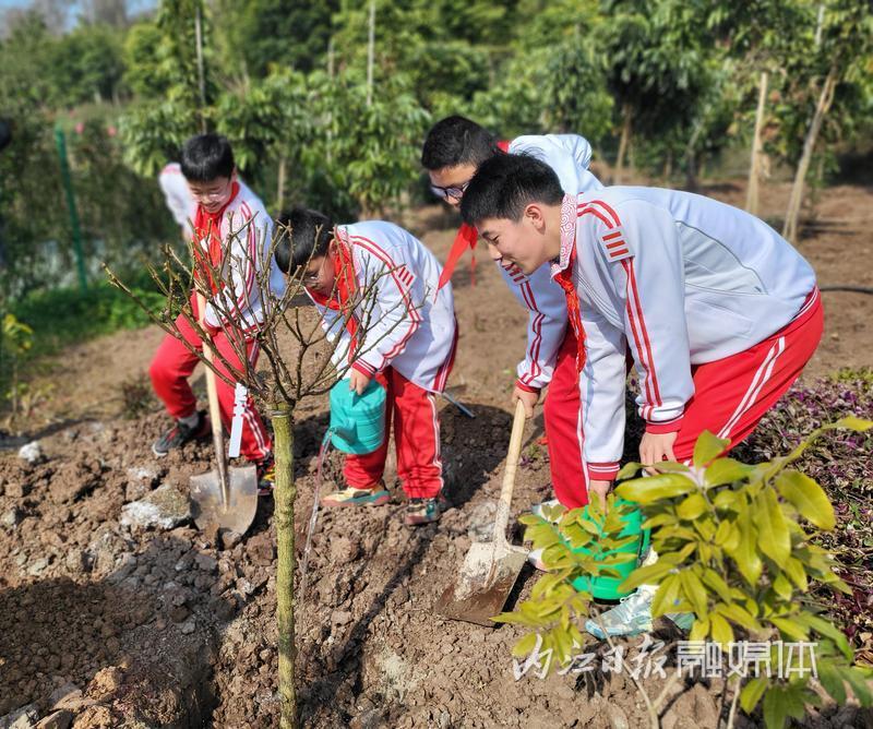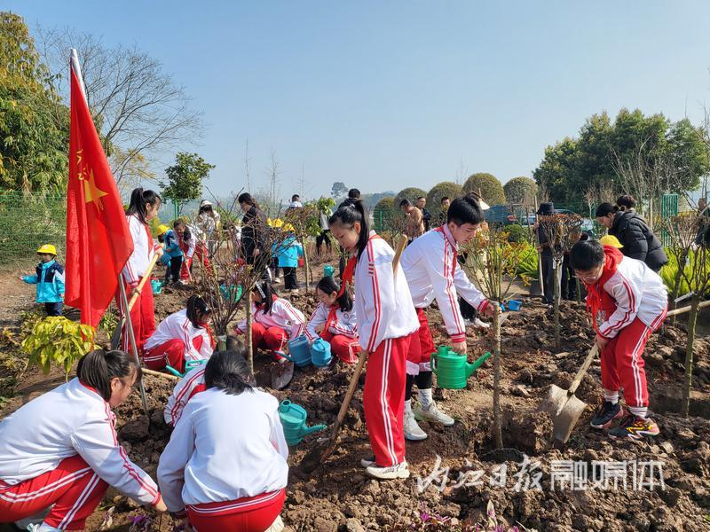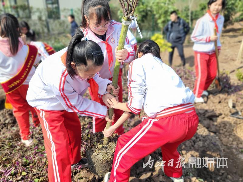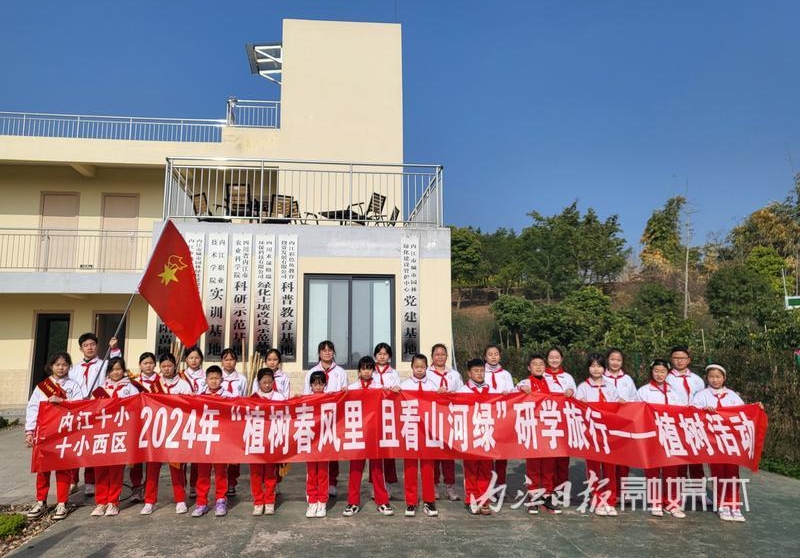 早春三月,春天带着绿色的气息向我们走来。为深入学习贯彻党的二十大精神,贯彻落实习近平生态文明思想,培养少年儿童热爱劳动、美化环境的意识,在一年一度的植树节来临之际,3月11日,内江十小携手内江投资控股集团有限公司,开展“植树春风里 且看山河绿”大手牵小手研学旅行植树活动。