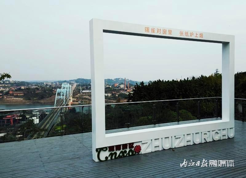走下日落观景台,在不远处,便是有着相框造型的日出观景台了。与之前的景色不同,这里可以欣赏到沱江及沿岸美景。这里静谧幽美,是一个安静赏景的好地方。如若能够早起,在这里看太阳缓缓从眼前升起,当金色的朝霞洒满了大地,前方是静静流淌的沱江水,身后是无人小径,那景色想来也是别有一番感受。