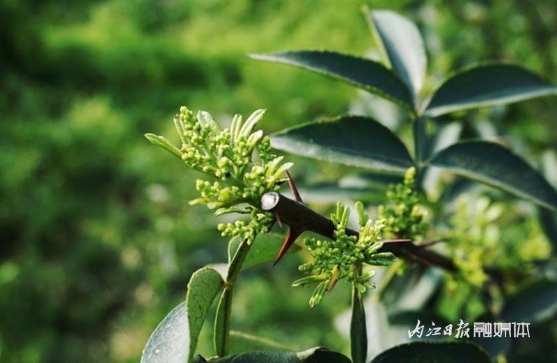 走进龙门镇兰家寺村5组400余亩花椒种植基地,放眼望去,一片郁郁葱葱。树枝上,星星点点的白色小花,在嫩绿的树叶间随风摇曳。村民们穿梭在花椒林中,仔细地为林下的杂草喷洒除草剂,远处的自动喷灌设施不停歇地转动着喷头。水雾中,每一片树叶上都挂着晶莹剔透的水珠,每一棵树都享受着这一刻的“酣畅淋漓”。