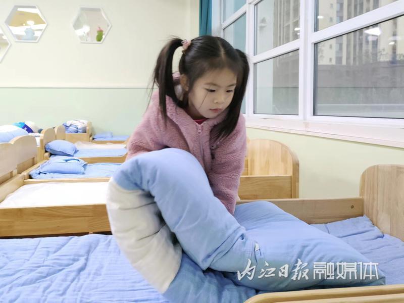 从小养成良好的生活习惯,培养动手能力,对于幼儿成长有着至关重要的作用。为了使幼儿在劳动中提升技能,在活动中促进成长,近日,内江市实验幼儿园开展叠被子主题教育活动。
