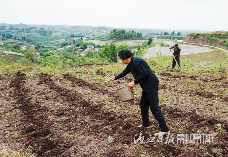 日前,在内江市市中区朝阳镇铧匠冲村,市中区淳风种(植)养殖家庭农场负责人伍莉趁着晴好天气,组织村民上山播种玉米。