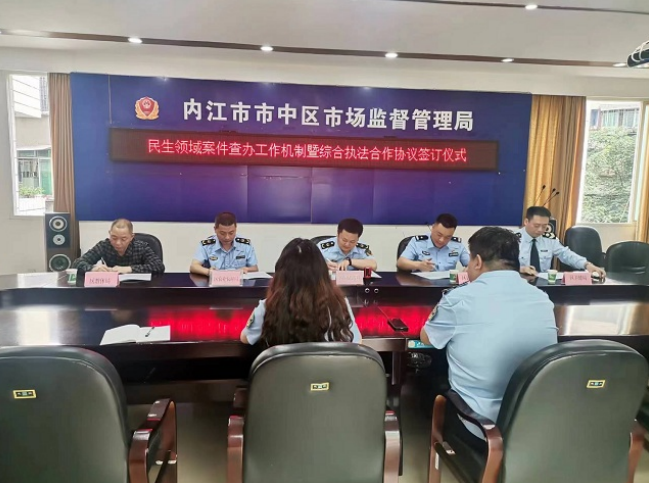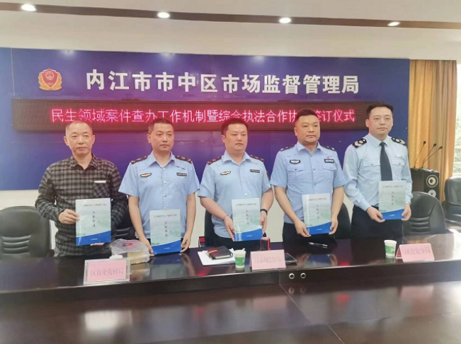 5月9日,内江市市中区市场监管局、内江市公安局市中区分局、市中区教育和体育局、市中区农业农村局、市中区卫生健康局共同签订《民生领域案件查办工作机制暨综合执法合作协议》(以下简称《协议》),进一步构建综合执法协作机制,推动形成联合执法合力,全力营造安全放心的消费环境。