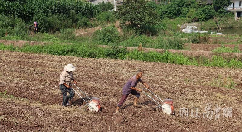 5月23日,记者来到位于市中区凌家镇彻天寺村的优质粮油现代农业示范园区,伴随着轰隆隆的机器声响,只见一台台大马力旋耕机在地里来回穿梭。在翻耕好的田地里,村民们手持压动式播种机和滚动式播种机默契配合,将一粒粒种子播撒田间。
