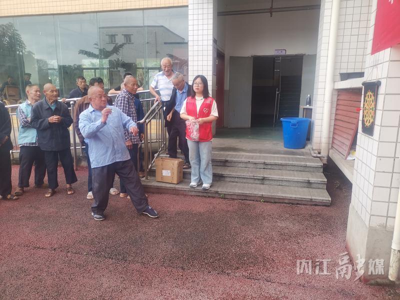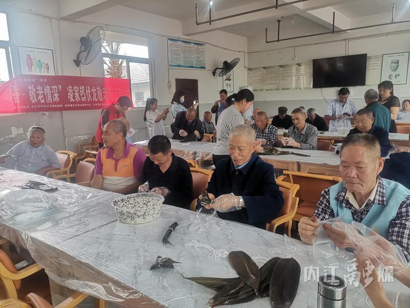 在随后开展的舒心工程活动中,太极队为伏龙敬老院的老人们表演太极拳与柔力球,传递健康与快乐;投飞镖送香囊等趣味小游戏及包粽子活动吸引了众多老人参与,老人们在欢乐的氛围中感受端午节的传统习俗。