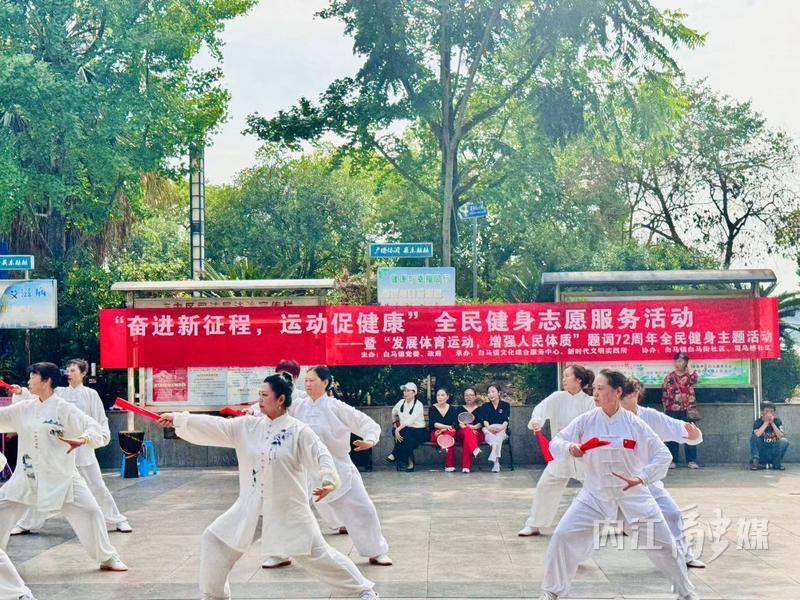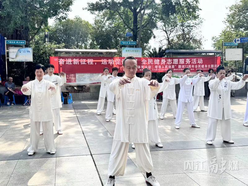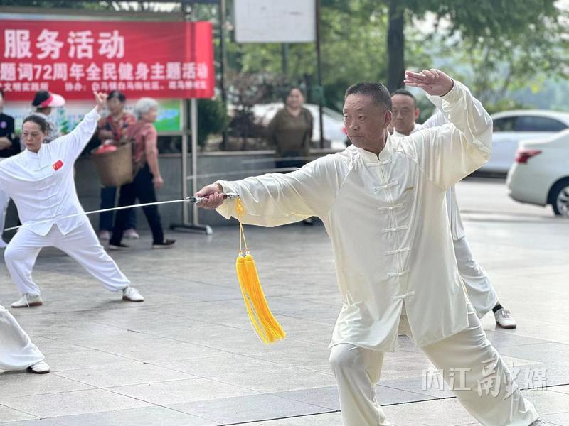 此次全民健身活动不仅有健康知识讲座,还有演柔力球健身套路、健身操、太极拳及太极剑展演。展演中全体队员身着统一服装,伴随着悠扬舒缓的音乐节奏,动作张弛有度、刚柔相济,使太极拳与中国元素、全民健身相融合,形成了意、气、形的完美交融,充分诠释健身与健康的和谐统一。