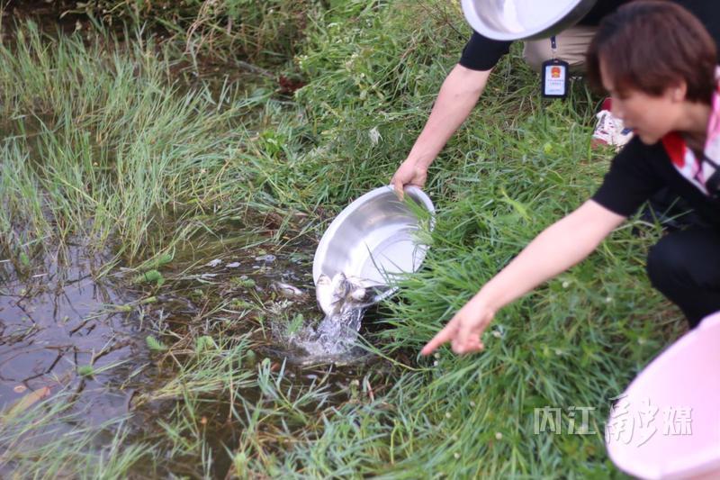活动现场,一盆盆鱼苗被倒入乌龙河中,鱼儿们相继投入“新家”的怀抱,为乌龙河流域再添生机与活力。