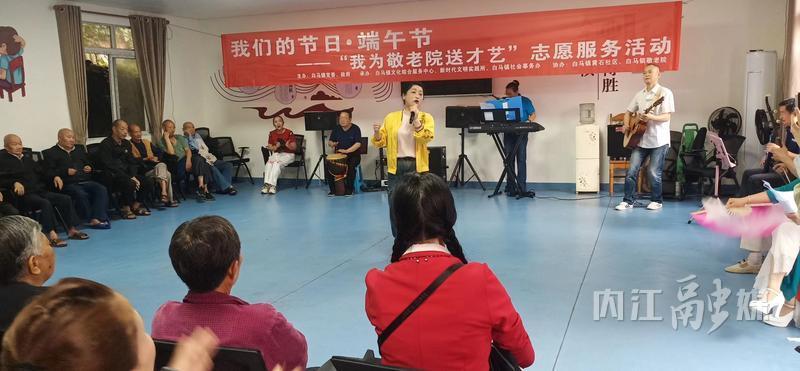 端午节前夕,6月7日,由市中区白马镇党委、政府主办,白马镇新时代文明实践所、镇文化综合服务中心、镇社会事务办承办的“我们的节日·端午节——我为敬老院送才艺”文明实践活动,走进白马镇敬老院,用文艺演出为老人们送上慰问和祝福。