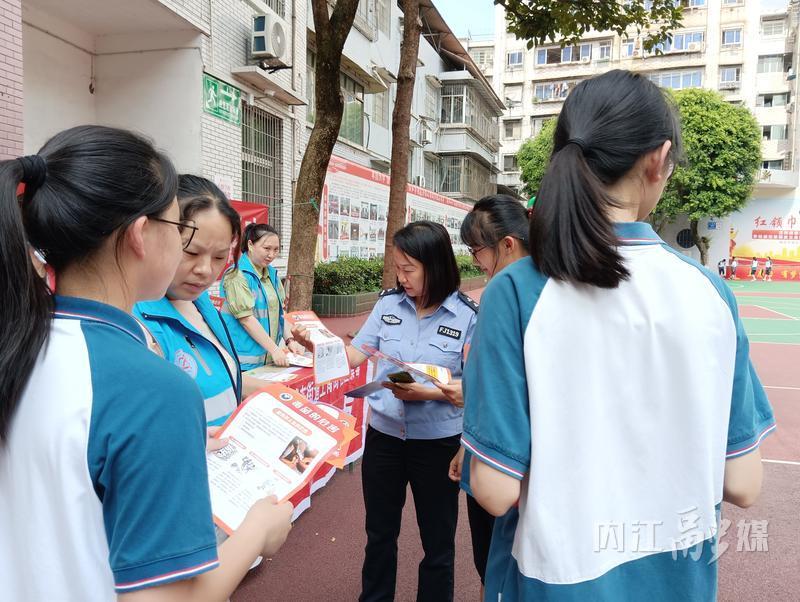 民警给学生讲解宣传资料上的内容
