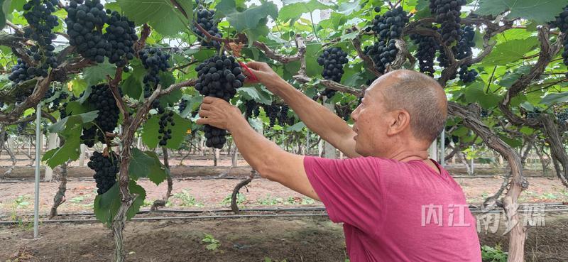 种植户李含春介绍:“我们的‘夏黑’葡萄已经上市20多天了,每天都能卖出几百甚至上千斤。今年整个基地的葡萄总产量预计达到15万斤,总产值可达150万元。”