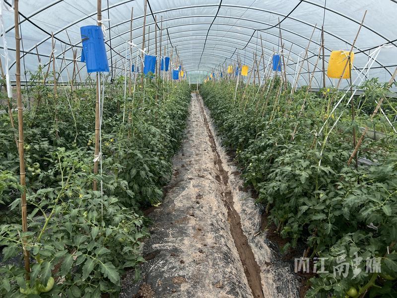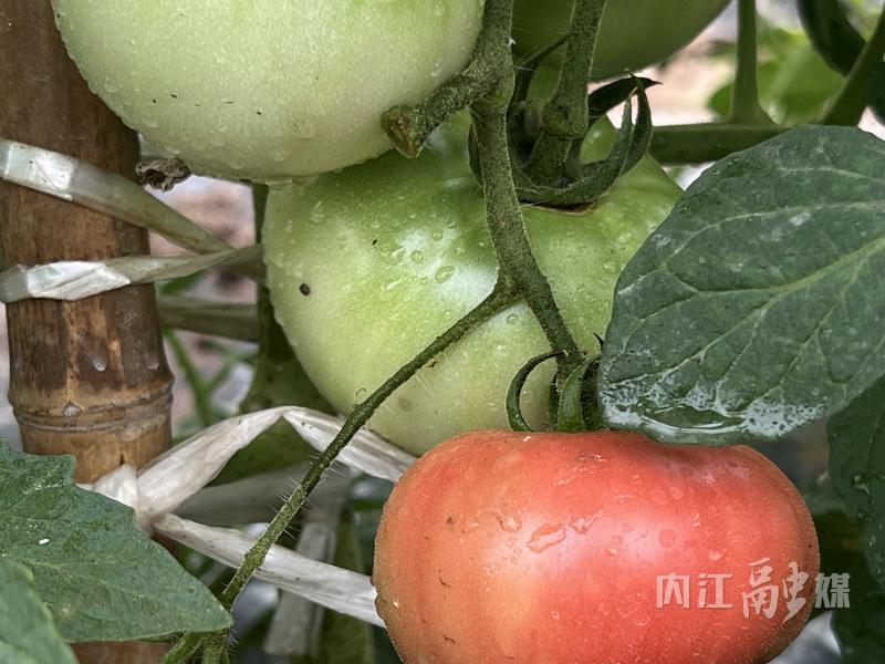 “这个番茄差不多还有一个星期就可以摘了,到时会卖到内江城里和周边城市。”在大棚内工作的村民正在番茄园里忙碌着,为即将到来的丰收做准备。