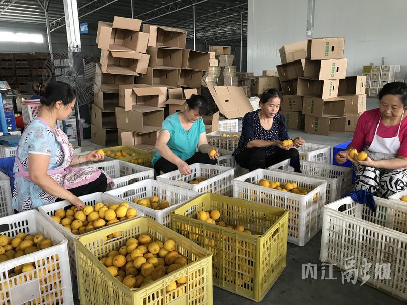 四川新茂源农业科技发展有限公司的工人们正在分拣柠檬