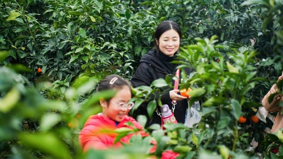 放眼望去,另一边的柑橘采摘园里,金黄的果实挂满枝头,散发出诱人的香气。游客们纷纷走进果园,拿起专业的采摘工具和果篮,开始体验采摘的乐趣。