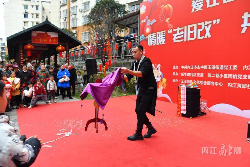 下午3点30分,活动在舞蹈《盛世繁华》的热烈氛围中拉开帷幕,《红歌串烧》、川剧《变脸吐火》、近景魔术……一个个精彩节目依次亮相,频频赢得在场观众喝彩和掌声。