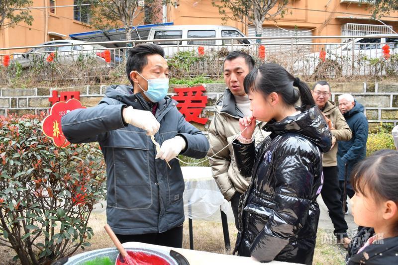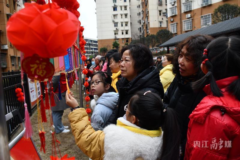 文艺演出刚结束,猜灯谜、诗词大擂台、包汤圆、吹糖人……一个个趣味活动又接踵而至。“猜灯谜”活动吸引了众多居民驻足,一张张写满谜题的彩色纸条在风中轻轻摇曳,谜面内容涵盖了历史、文化、生活常识等多个方面,既有趣味性又有知识性。居民们或独自思考,或三两成群讨论,一旦想出答案,便兴奋地跑到工作人员处核对,脸上满满的成就感。