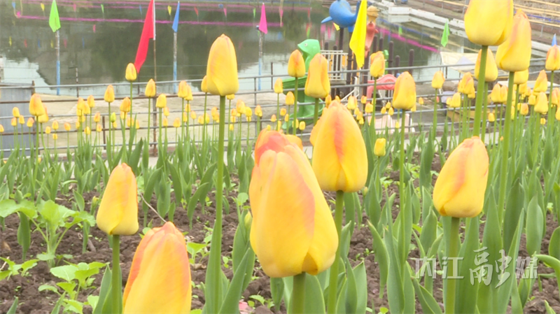 当天上午10点,记者在永博农业公园内看到,红色、橙色、粉色、黄色等颜色各异的郁金香含苞吐萼,用热烈的色彩欢庆着春天的到来。漫步在花间小道上,空气中弥漫着淡淡的花香,让人沉醉其中。与别的地方不同的是,永博农业公园更注重鲜花与周围景观的搭配,园内起伏的地形,让郁金香更具动感,像一朵朵浪花奔涌而来。