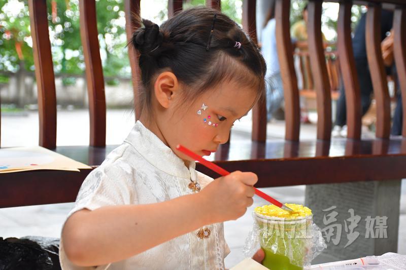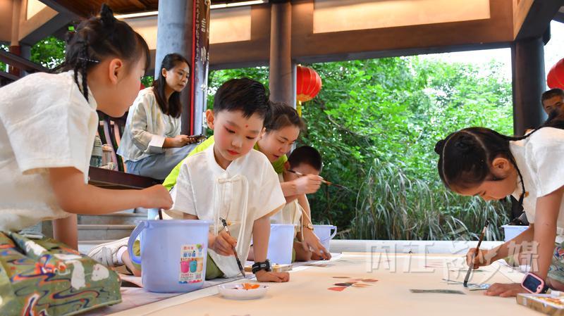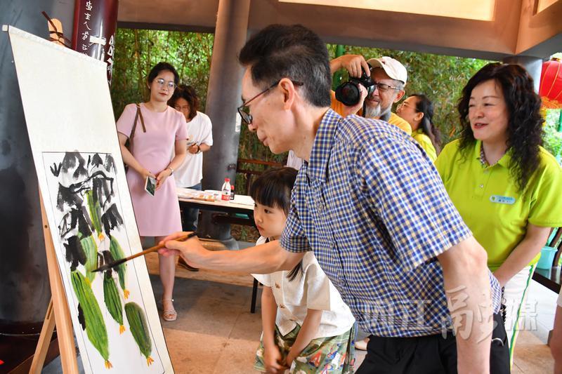 在现场作画环节,孩子们手持画笔,在画布、画纸乃至特制的长卷上肆意挥洒创意。稚嫩的小手,或涂抹绚烂的色彩,或勾勒天马行空的线条……一幅幅充满童趣的作品,展现孩子们眼中的奇幻世界。另一边,内江籍著名艺术家高峡,内江著名书法家田世华,内江师院张大千美术学院副院长高登明,内江职业技术学院文化艺术与旅游学院院长、国家二级美术师郭强等书画家以传统笔墨为媒,铺展宣纸、蘸墨挥毫,灵动的花鸟、秀美的山水在笔下徐徐呈现,精湛的技法引得孩子们围观赞叹。