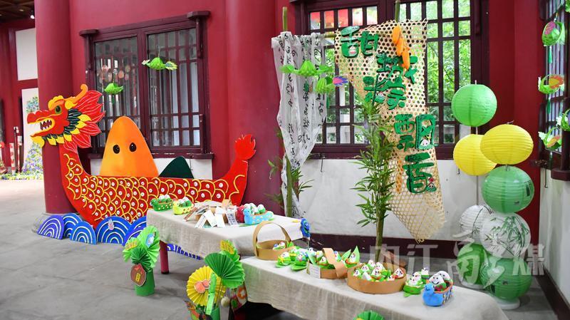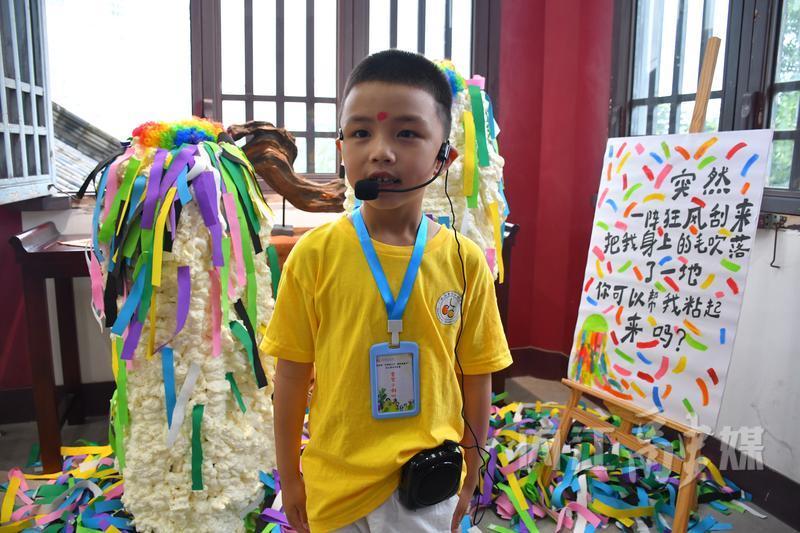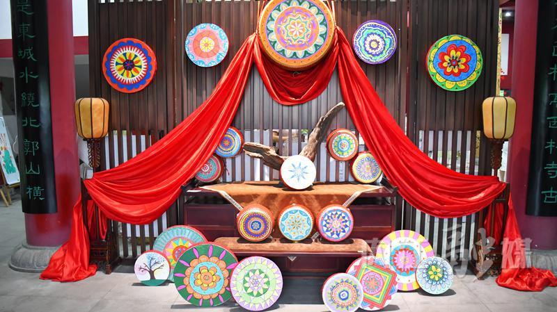 本届美术作品展设在内江大千园太白楼,按照楼层分为“童画非遗|重返‘甜’时光”“童彩描绘|我的‘乐’时光”“童思畅想|未来‘梦’时光”三个篇章,共展出来自内江一幼约650件儿童艺术作品,涵盖水墨画、剪纸、漆艺、鼓面画、扎染、手工等多种美术表现形式,每一件作品都承载着孩子们的奇思妙想,是他们成长的见证,是他们心中最珍贵的记忆。