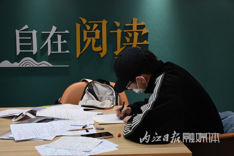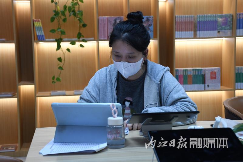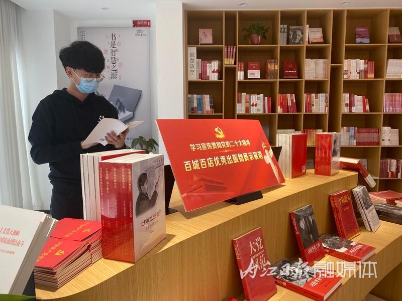 11月15日,在威远县严陵镇接官亭路的“甜城悦读·清溪书吧”,市民龙珊正在党史学习教育专区,认真阅读党的二十大报告单行本及相关学习辅导读物。