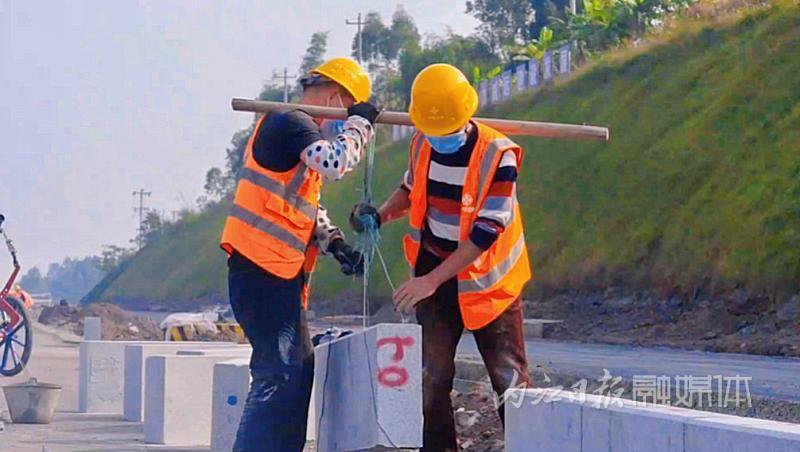 川威大道二期项目是威远县的重点项目。11月21日,项目建设现场,一派热火朝天的建设景象:一辆辆运输车来回穿梭,工人们在安装路沿石,大型机械设备在铺设辅道水稳层……
