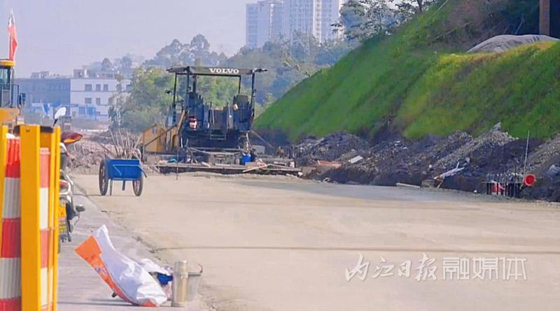 截至目前,项目主道全线水稳层已完成铺设,即将铺设沥青混凝土,已完成工程总量的80%,预计明年春节前达到通车条件。