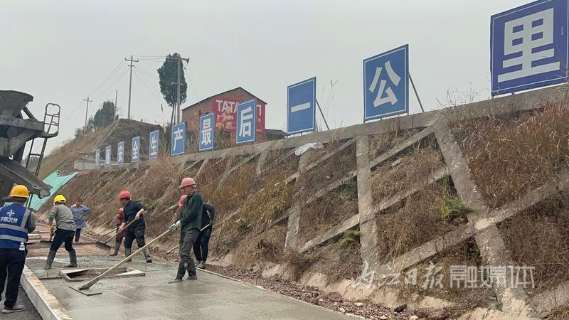 1月13日下午,记者在川威大道二期项目建设现场看到,施工人员抓紧硬化人行道;路灯杆立在两旁,上面安装有迎新春装饰灯。
