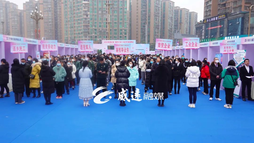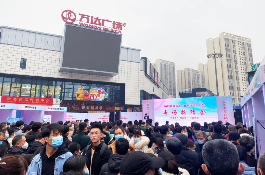 1月13日上午9点,由中共威远县委、威远县人民政府主办,威远县人力资源社会保障局承办的新春送岗、助企招工、乐业威远2023年“春风行动”大型专场招聘会在威远万达广场举行,现场早已经人山人海,聚集了不少人。