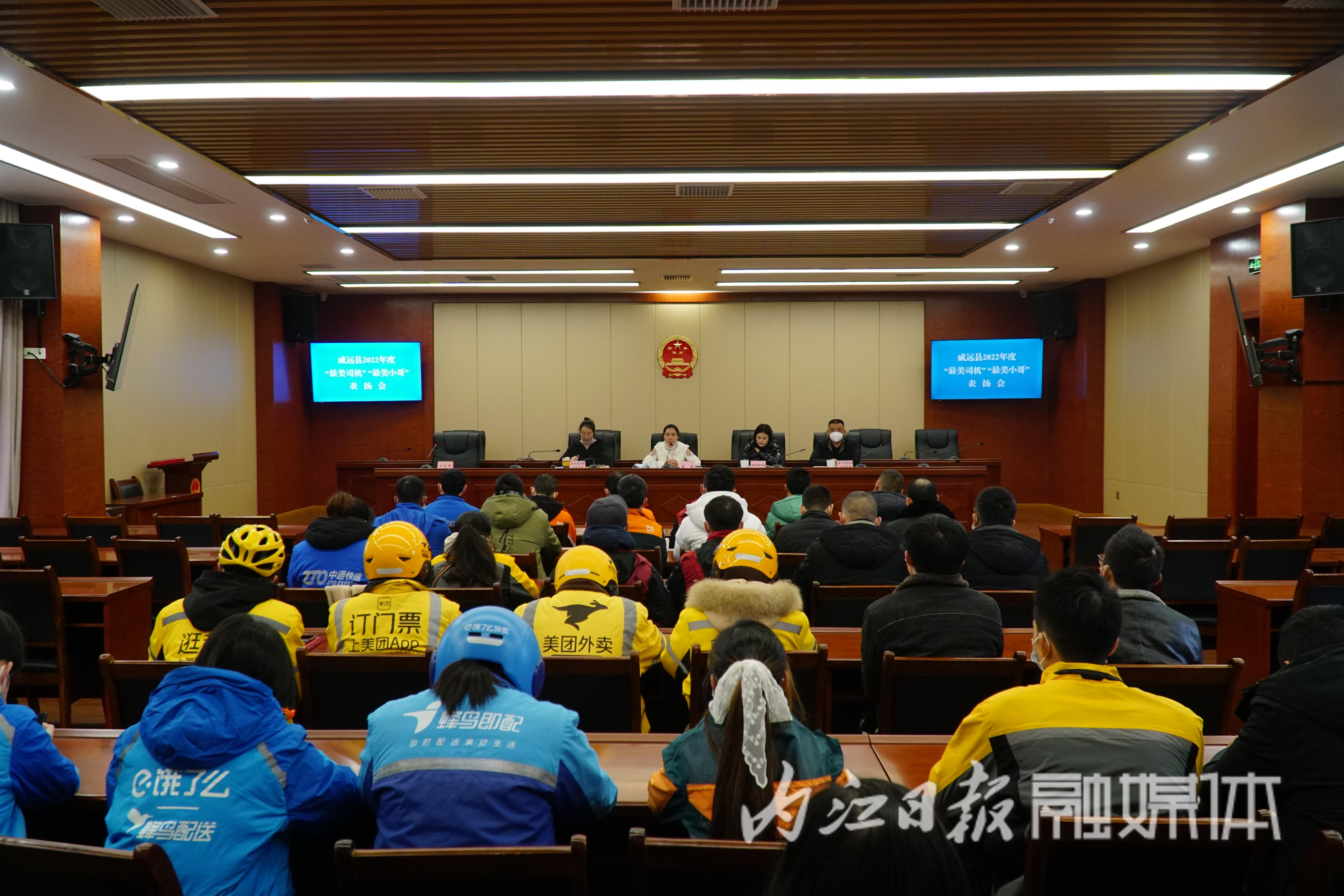 1月17日,威远县2022年度“最美司机”“最美小哥”表扬会召开。县委组织部副部长、县委两新工委书记主持会议并讲话,县交通运输行业党委、县外卖配送行业党委有关负责人及“最美司机”“最美小哥”、新业态企业代表参加会议。