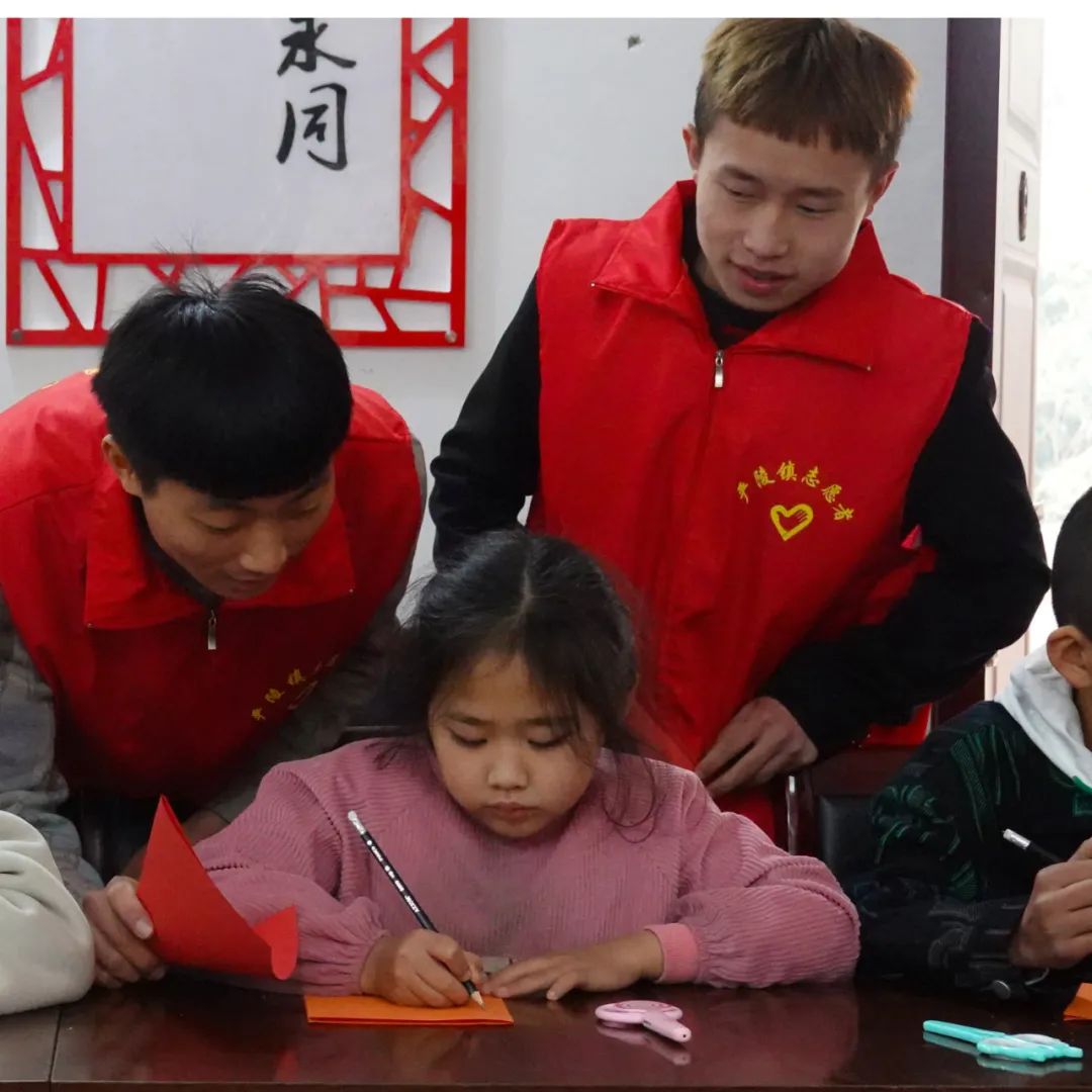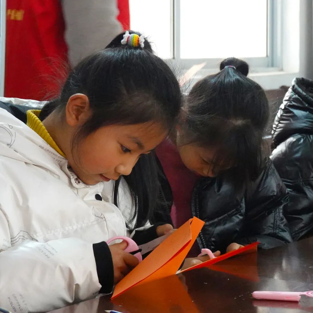 活动现场,孩子们在大学生志愿者的指导下,通过折、叠、画、剪等步骤,制作出了一个个特别又有意义的兔子。