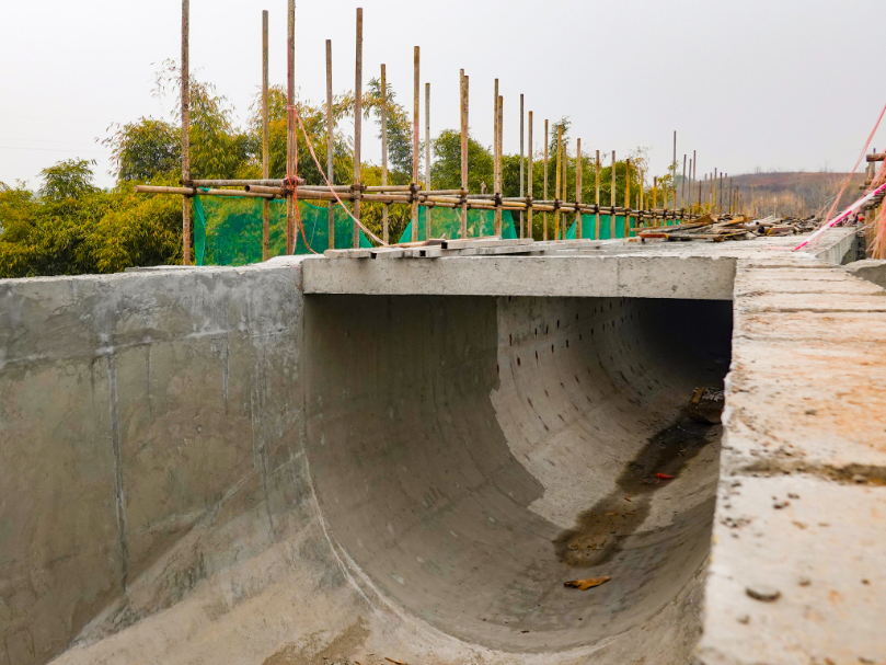 目前,只剩下最后两跨的槽身需要进行混凝土浇筑,预计20号之前完成,之后将进行附属工程栏杆的建设。