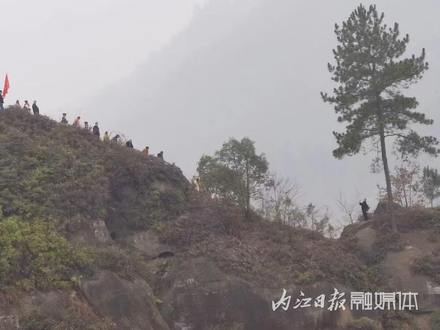 “天地悠悠过客匆匆,潮起又潮落……”网友“小哥”音箱里的歌曲《潇洒走一回》让同行的我们情不自禁地跟着哼唱起来。我们迈开双腿,甩着双臂,快步走在一会山道、一会乡村公路的征程上。一路上,徒友们三五成群,或驻足留影,或高谈阔论。很快,长沙坝和猴儿石的美景被大家尽收眼底。来到爬穿岩洞的山下,一座陡峭的山峰矗立在大家眼前,一条狭窄的羊肠小道被疯长的小草挡住了身影。